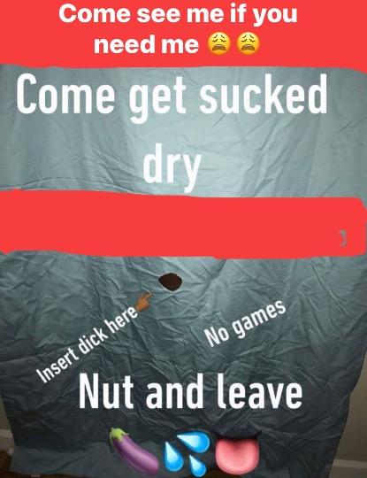 I know you looking to get that big dick drain dry, look here and only here when looking to get that dic sloppy wetand nasty... they call me hoover throat/cream box.. if you got the 💰for the pussy then i got the pussy for the 💰end of the story so message me to release,im your girl.. be cash ready plz no time for games❌cops..also im in kannapolis nc so dont ask becuz i just told you..my meets are the gloryhole only